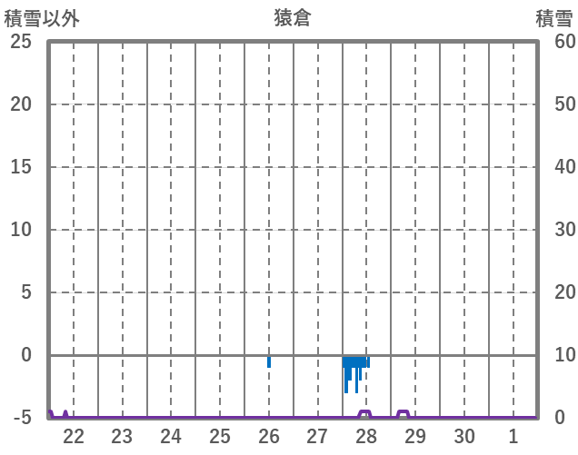 | 日 | 時 | 気温 | 降水 | 風向/風速 | 日照 | 積雪 | 降雪 |