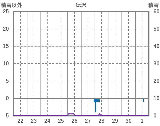 | 日 | 時 | 気温 | 降水 | 風向/風速 | 日照 | 積雪 | 降雪 |