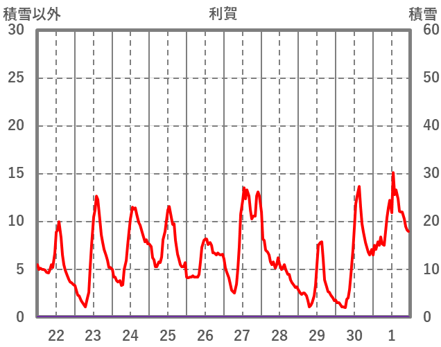 | 日 | 時 | 気温 | 降水 | 風向/風速 | 日照 | 積雪 | 降雪 |