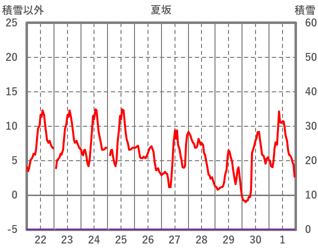 | 日 | 時 | 気温 | 降水 | 風向/風速 | 日照 | 積雪 | 降雪 |