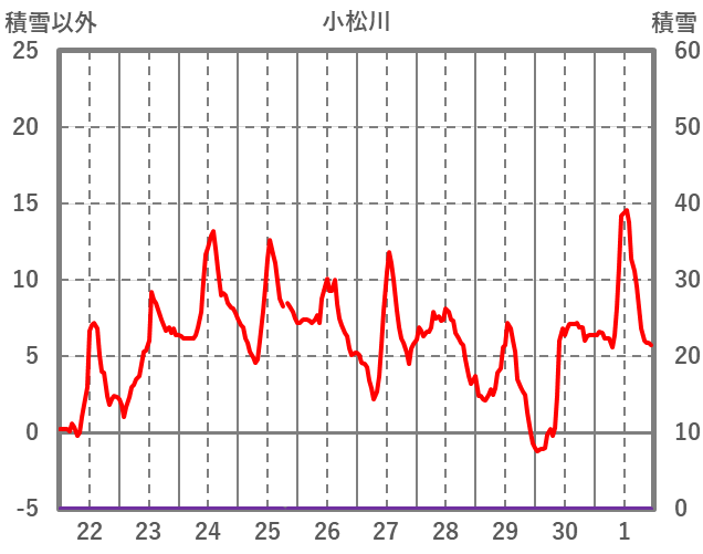 | 日 | 時 | 気温 | 降水 | 風向/風速 | 日照 | 積雪 | 降雪 |