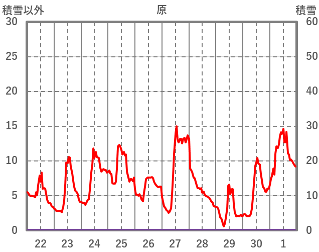 | 日 | 時 | 気温 | 降水 | 風向/風速 | 日照 | 積雪 | 降雪 |