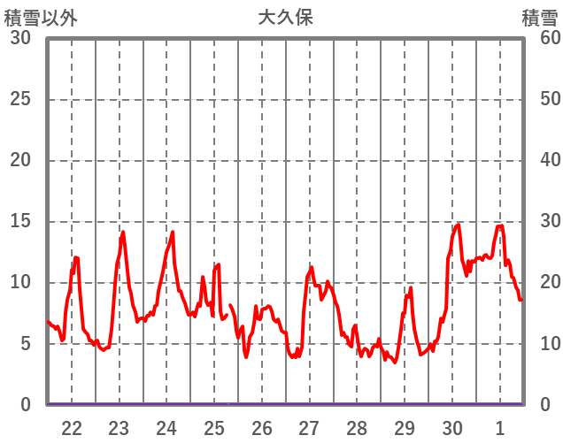 | 日 | 時 | 気温 | 降水 | 風向/風速 | 日照 | 積雪 | 降雪 |