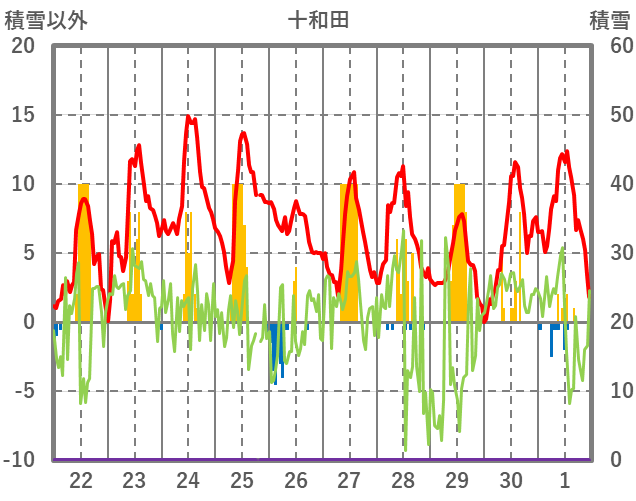 | 日 | 時 | 気温 | 降水 | 風向/風速 | 日照 | 積雪 | 降雪 |