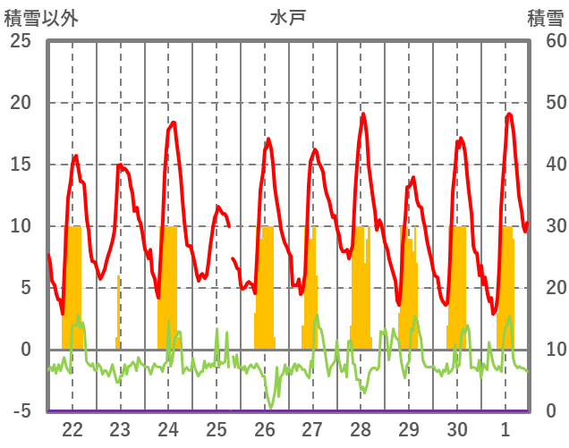 | 日 | 時 | 気温 | 降水 | 風向/風速 | 日照 | 積雪 | 降雪 |