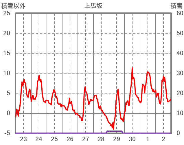 | 日 | 時 | 気温 | 降水 | 風向/風速 | 日照 | 積雪 | 降雪 |