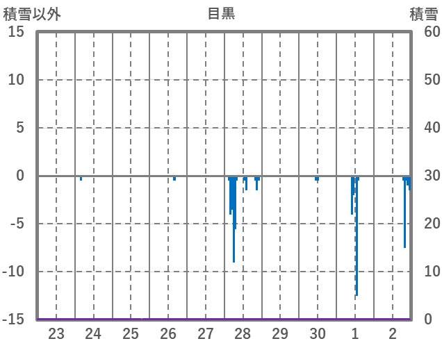| 日 | 時 | 気温 | 降水 | 風向/風速 | 日照 | 積雪 | 降雪 |
