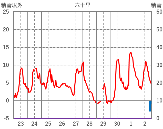| 日 | 時 | 気温 | 降水 | 風向/風速 | 日照 | 積雪 | 降雪 |