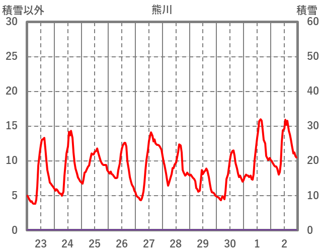 | 日 | 時 | 気温 | 降水 | 風向/風速 | 日照 | 積雪 | 降雪 |