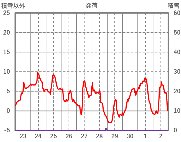 | 日 | 時 | 気温 | 降水 | 風向/風速 | 日照 | 積雪 | 降雪 |
