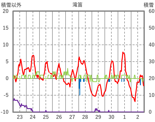 | 日 | 時 | 気温 | 降水 | 風向/風速 | 日照 | 積雪 | 降雪 |