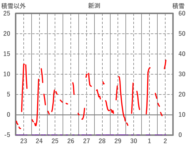 | 日 | 時 | 気温 | 降水 | 風向/風速 | 日照 | 積雪 | 降雪 |