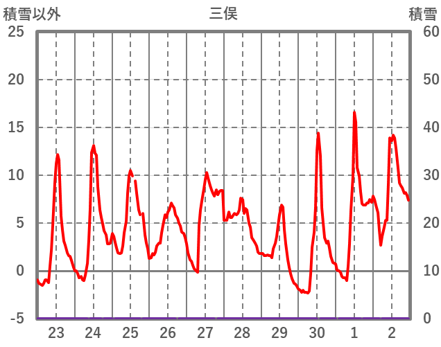 | 日 | 時 | 気温 | 降水 | 風向/風速 | 日照 | 積雪 | 降雪 |