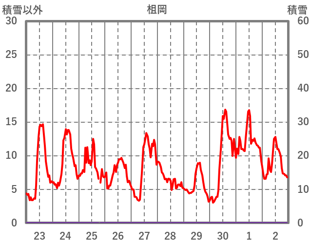 | 日 | 時 | 気温 | 降水 | 風向/風速 | 日照 | 積雪 | 降雪 |
