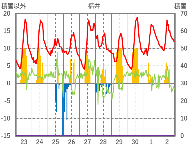 | 日 | 時 | 気温 | 降水 | 風向/風速 | 日照 | 積雪 | 降雪 |