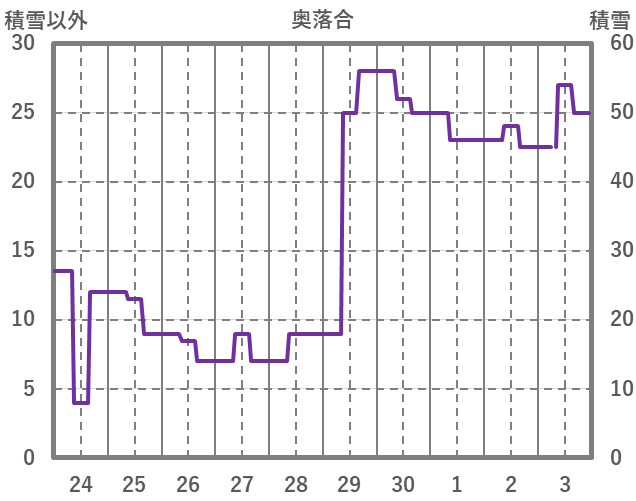 | 日 | 時 | 気温 | 降水 | 風向/風速 | 日照 | 積雪 | 降雪 |