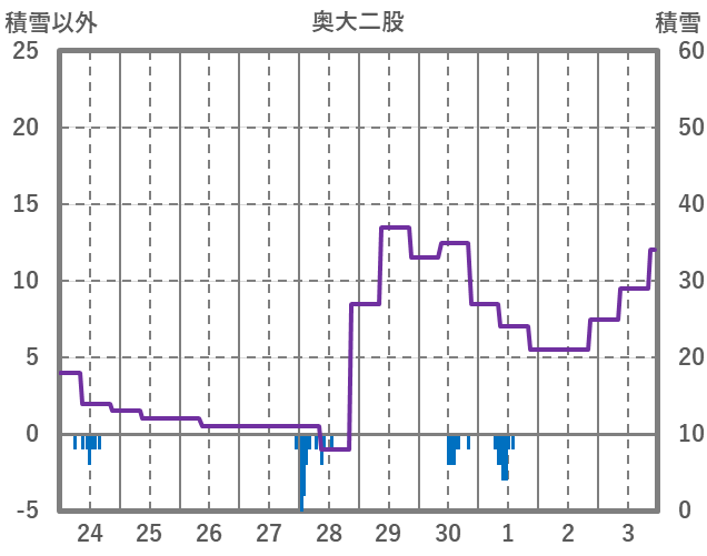 | 日 | 時 | 気温 | 降水 | 風向/風速 | 日照 | 積雪 | 降雪 |