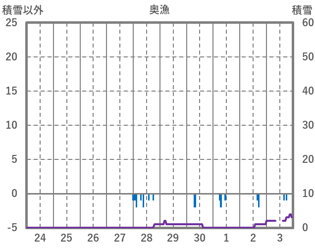 | 日 | 時 | 気温 | 降水 | 風向/風速 | 日照 | 積雪 | 降雪 |