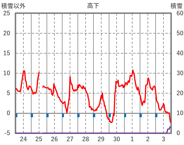 | 日 | 時 | 気温 | 降水 | 風向/風速 | 日照 | 積雪 | 降雪 |