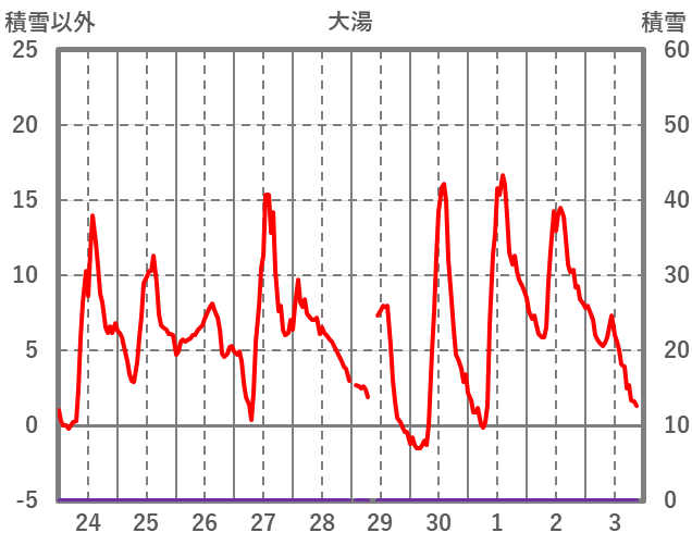 | 日 | 時 | 気温 | 降水 | 風向/風速 | 日照 | 積雪 | 降雪 |