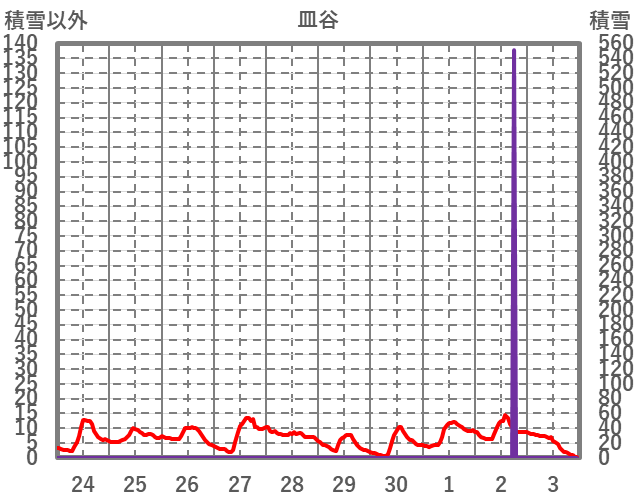 | 日 | 時 | 気温 | 降水 | 風向/風速 | 日照 | 積雪 | 降雪 |