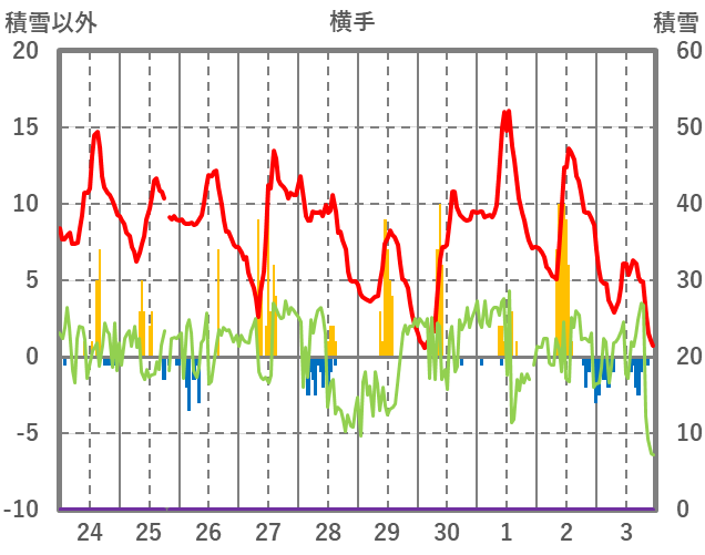 | 日 | 時 | 気温 | 降水 | 風向/風速 | 日照 | 積雪 | 降雪 |