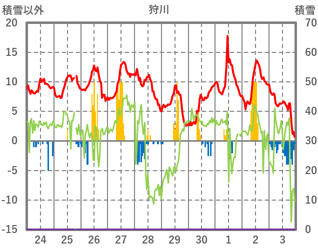 | 日 | 時 | 気温 | 降水 | 風向/風速 | 日照 | 積雪 | 降雪 |
