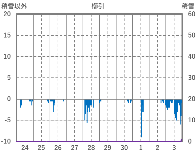 | 日 | 時 | 気温 | 降水 | 風向/風速 | 日照 | 積雪 | 降雪 |