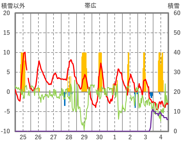 | 日 | 時 | 気温 | 降水 | 風向/風速 | 日照 | 積雪 | 降雪 |