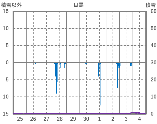 | 日 | 時 | 気温 | 降水 | 風向/風速 | 日照 | 積雪 | 降雪 |