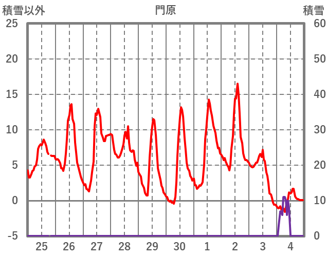 | 日 | 時 | 気温 | 降水 | 風向/風速 | 日照 | 積雪 | 降雪 |