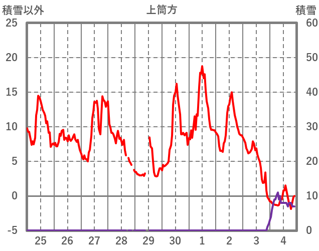 | 日 | 時 | 気温 | 降水 | 風向/風速 | 日照 | 積雪 | 降雪 |