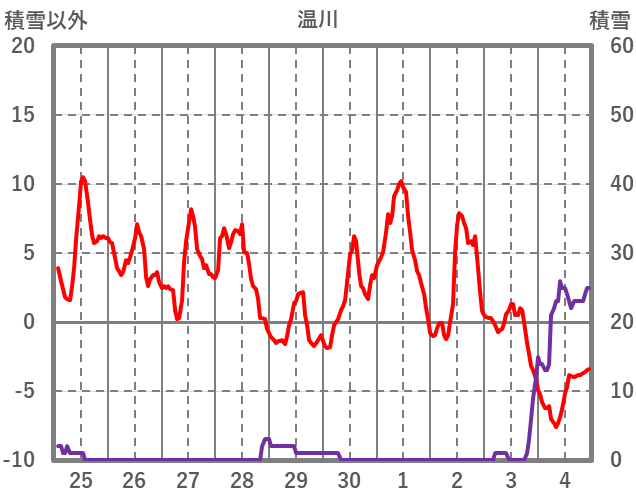 | 日 | 時 | 気温 | 降水 | 風向/風速 | 日照 | 積雪 | 降雪 |