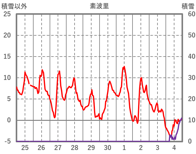| 日 | 時 | 気温 | 降水 | 風向/風速 | 日照 | 積雪 | 降雪 |