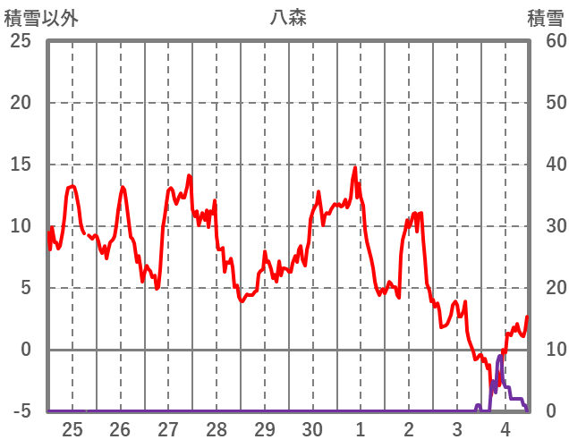 | 日 | 時 | 気温 | 降水 | 風向/風速 | 日照 | 積雪 | 降雪 |