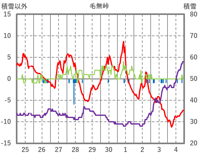 | 日 | 時 | 気温 | 降水 | 風向/風速 | 日照 | 積雪 | 降雪 |