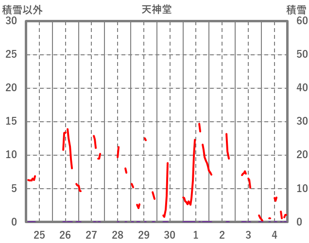 | 日 | 時 | 気温 | 降水 | 風向/風速 | 日照 | 積雪 | 降雪 |