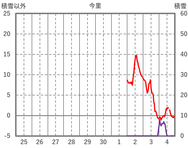 | 日 | 時 | 気温 | 降水 | 風向/風速 | 日照 | 積雪 | 降雪 |
