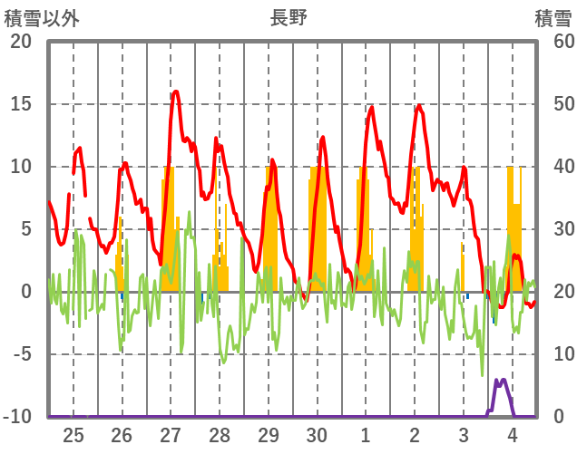 | 日 | 時 | 気温 | 降水 | 風向/風速 | 日照 | 積雪 | 降雪 |
