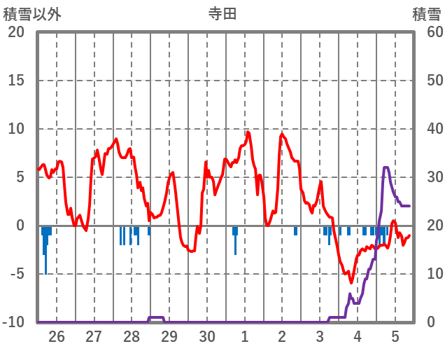 | 日 | 時 | 気温 | 降水 | 風向/風速 | 日照 | 積雪 | 降雪 |