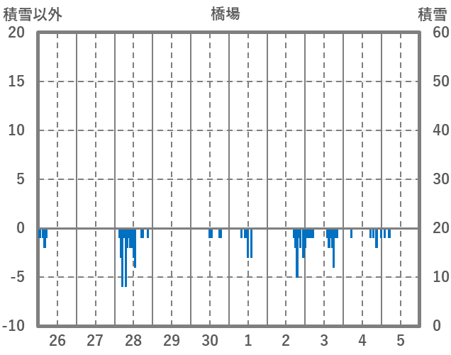 | 日 | 時 | 気温 | 降水 | 風向/風速 | 日照 | 積雪 | 降雪 |