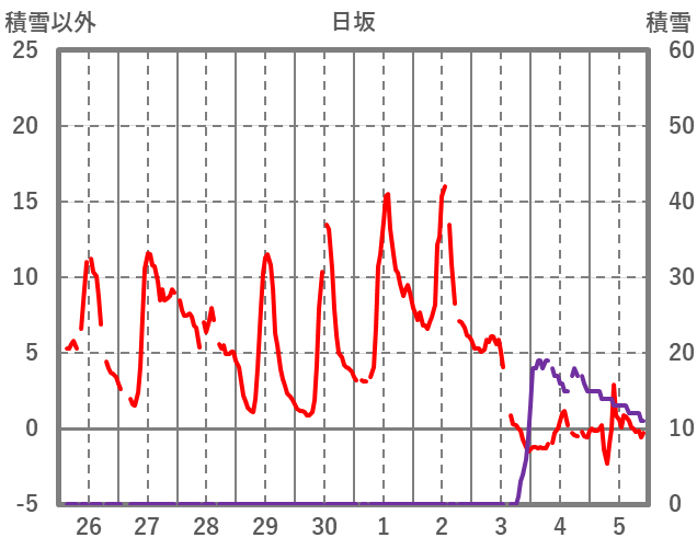 | 日 | 時 | 気温 | 降水 | 風向/風速 | 日照 | 積雪 | 降雪 |