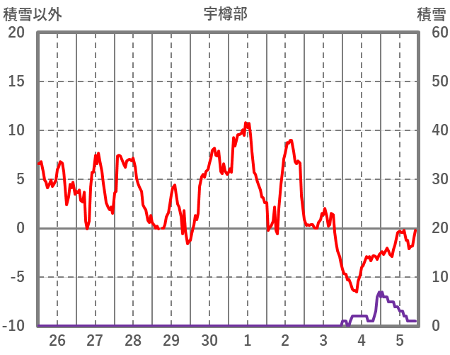 | 日 | 時 | 気温 | 降水 | 風向/風速 | 日照 | 積雪 | 降雪 |