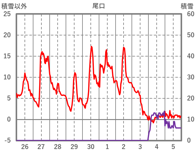 | 日 | 時 | 気温 | 降水 | 風向/風速 | 日照 | 積雪 | 降雪 |