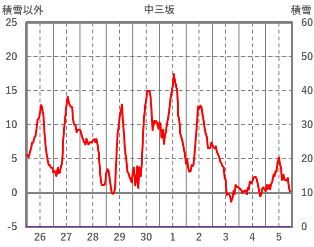 | 日 | 時 | 気温 | 降水 | 風向/風速 | 日照 | 積雪 | 降雪 |