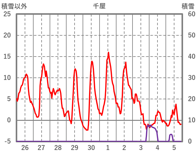 | 日 | 時 | 気温 | 降水 | 風向/風速 | 日照 | 積雪 | 降雪 |