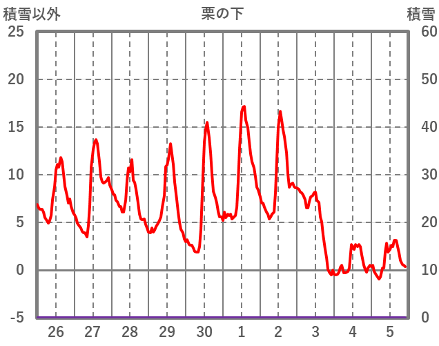 | 日 | 時 | 気温 | 降水 | 風向/風速 | 日照 | 積雪 | 降雪 |