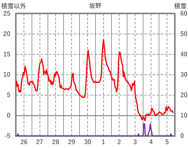 | 日 | 時 | 気温 | 降水 | 風向/風速 | 日照 | 積雪 | 降雪 |