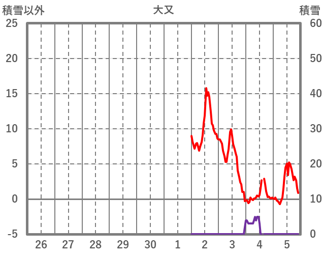 | 日 | 時 | 気温 | 降水 | 風向/風速 | 日照 | 積雪 | 降雪 |