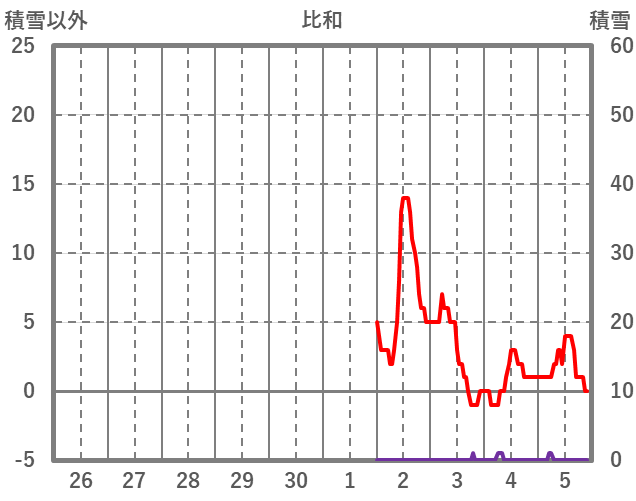 | 日 | 時 | 気温 | 降水 | 風向/風速 | 日照 | 積雪 | 降雪 |